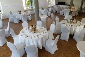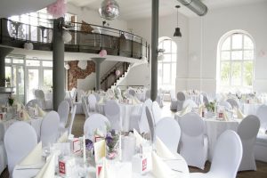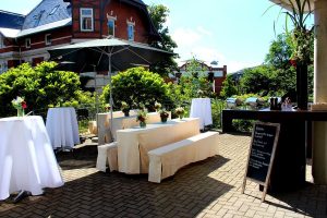 Eine Terrasse für Sektempfänge oder BBQs ist ebenfalls vorhanden. Abgerundet wird das Angebot durch die verkehrsgünstige Lage und ausreichend Parkplätze in unmittelbarer Umgebung.