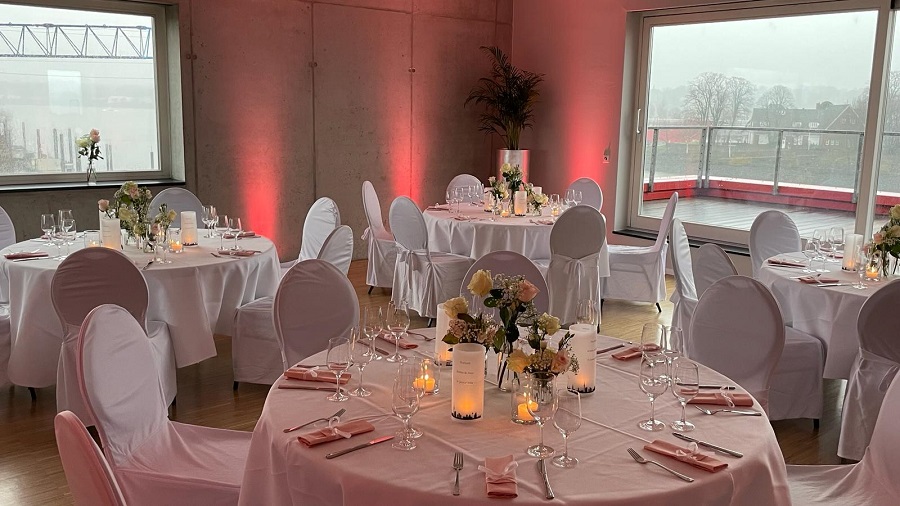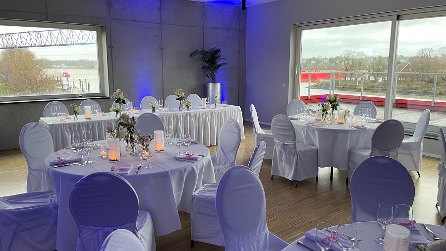 Als 1910 die Schiffswerft in Finkenwerder gegründetet wurde, hätte sich keiner träumen lassen, dass die Schiffs-Slip-Anlage einmal einem 21 Meter hohen, futuristischen Objekt für Kreativität weichen würde. Der Raum kann nach Ihren Vorstellungen in jeder Farbe ausgeleuchtet werden. Ein offener Küchen-. und Tresenbereich sorgt für gute Stimmung im Fleet 3. Ein weiterer Raum kann für Buffet oder als Dancefloor-Area genutzt werdne.
