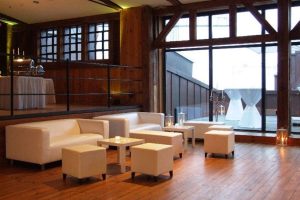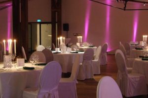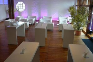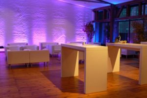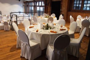 Die ausgebauten Kranhäuschen, die ehemals zum Be- und Entladen des Kaispeicher B genutzt wurden, können heute ideal als Lounge-Area umgebaut werden. Die verschiedenen Ebenen im Speicher, die zum Teil durch eine gläsernde Wand von einander getrennt sind, dienen als natürliche Bereiche für die Bankettbestuhlung und der Dancefloor-Area.