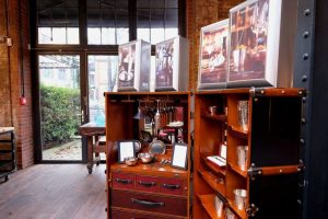 Das raue Backsteinmauerwerk, die grau gestrichenen Pfeiler und das großzügige Oberlicht versetzen jeden Gast in die Zeit der Industrialisierung des 19. Jahrhunderts, als hier noch Theatervorstellungen stattfanden. Die offene Galeriearchitektur und der fast zwei Meter große neoklassische Kronleuchter geben dem Besucher ein beeindruckendes Raumerlebnis. Von japanischen Küchenmessern über amerikanische Möbel bis hin zu Kunstobjekten aus dem Abendland gibt es viel zu bestaunen.