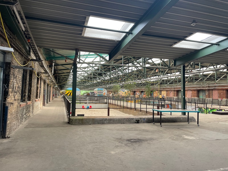 In der Kulisse eines ehemaligen Güterbahnhofs und deren Lagerhallen arbeiten Firmen, denen man über die Schulter schauen kann. Diese können füraußergewöhnliche Hochzeitsfeiern genutzt werden.
