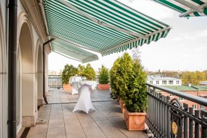 Auf den zwei privaten Terrassenflächen wird der Sektempfang über den Dächern Hamburgs serviert. Genießen Sie später den Eröffnungstanz auf dem Eichenparkett mit Intarsien, die eine Windrose darstellen.