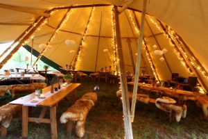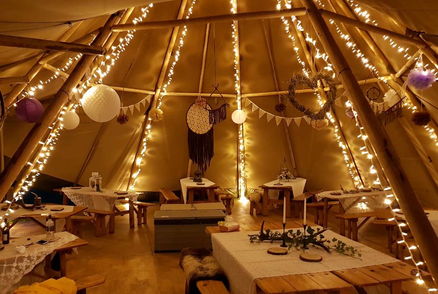 Feiern Sie Ihre Traumhochzeit oder Geburtstagsfeier im Freien und in Mitten der Natur. Begeistern Sie Gäste mit den einzigartigen nordischen Riesentipis. Durch die Verwendung von Holz und veredelten Naturfasern entsteht ein natürliches Raumklima. Zugleich ist das Tipi sehr robust und für verschiedenste Wetterbedinungen geeignet! So können, je nach Wetterbedingung, die Seitenwände geöffnet oder geschlossen werden.