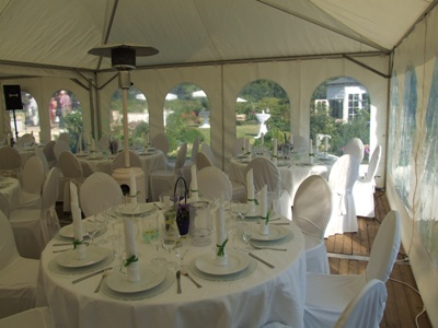 Die Bestuhlung ist ebenfalls frei wählbar. Entweder rustikal mit Bierzelttischen und -bänken oder mit Bankettbestuhlung an runden oder eckigen Tischen. Optional können die Zelte auch mit Teppich und Dachhimmel ausgestattet werden sowie ein WC-Wagen gestellt werden.